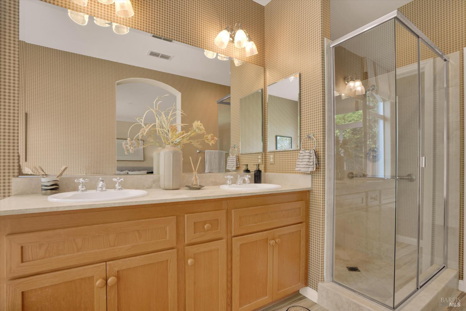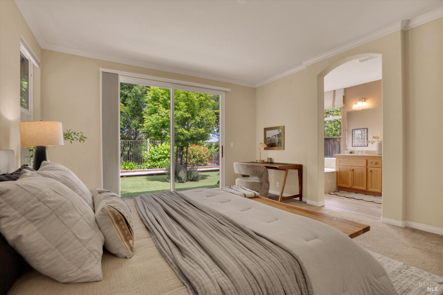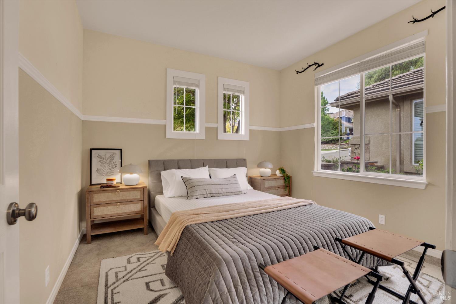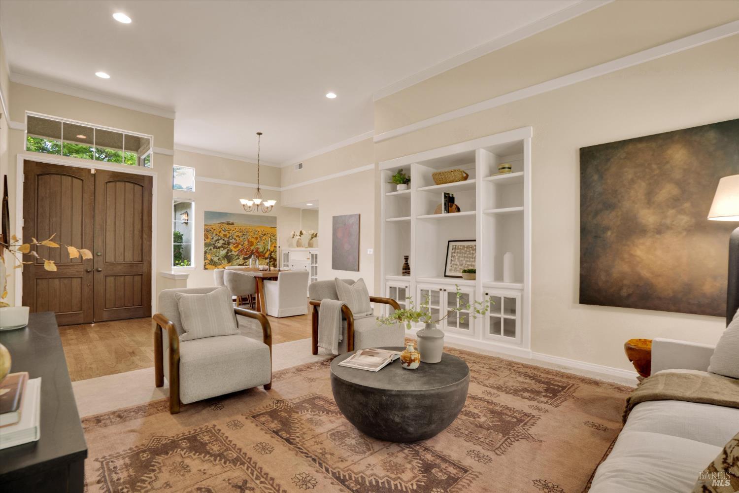 Tucked on a quiet cul-de-sac this single-story, sought-after beautifully maintained home offers privacy with no rear neighbors. Sunlight fills the space through tall ceilings and expansive windows. The kitchen features granite slab counters, stainless steel appliances, and a wine refrigerator that is perfect for entertaining. As a former model home, it showcases custom built-ins and detailed trim throughout. A flexible office offers the option for a 5th bedroom. Newer solar panels with Tesla battery back-up helps keep costs low on the utility bills. The beautiful landscaping is low-maintenance provides a serene environment. There is a practice bocce ball court in the back yard! 487 Gray Court is just moments from Benicia Community Park and award-winning Matthew Turner Elementary and all major freeways.