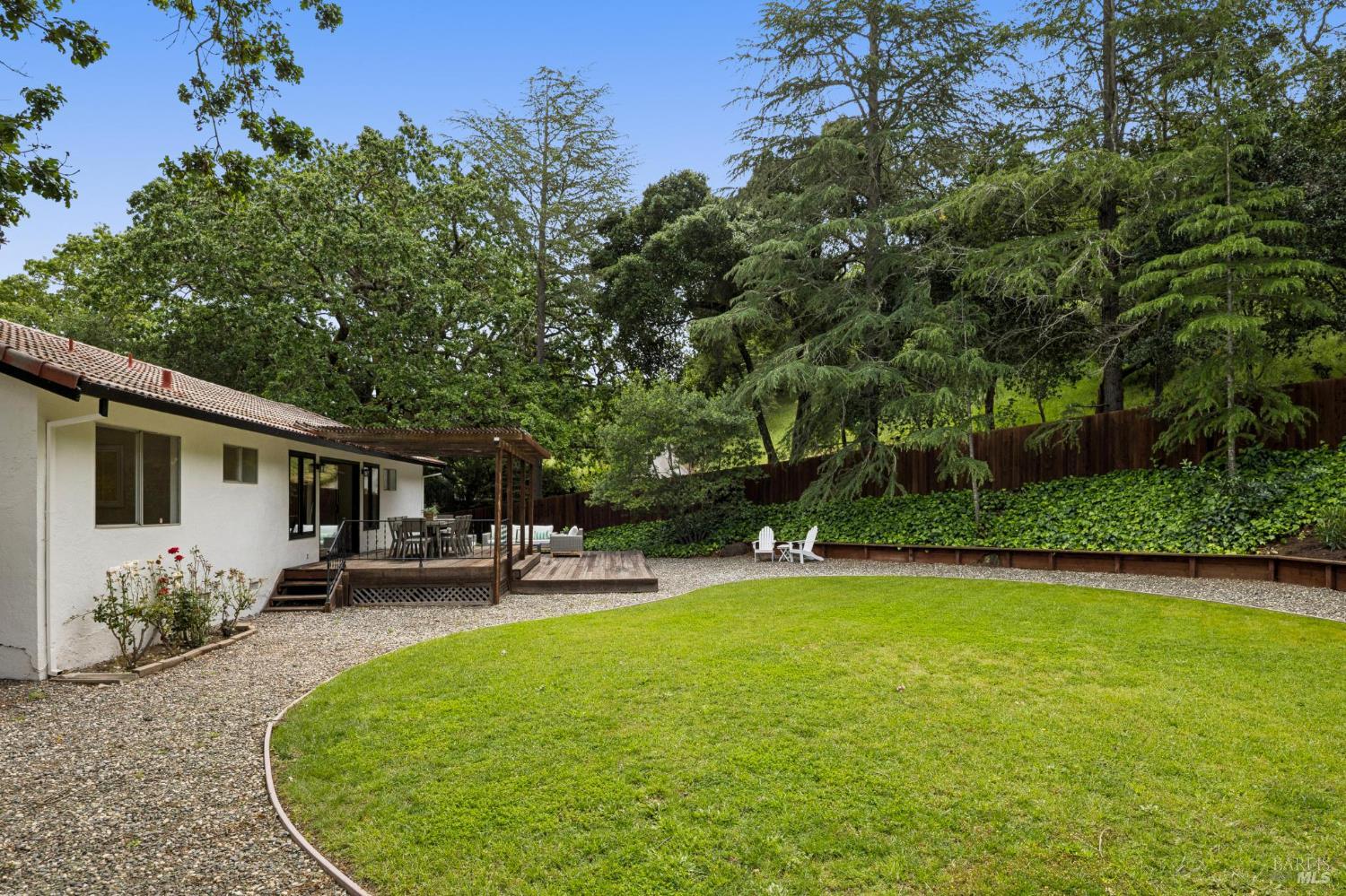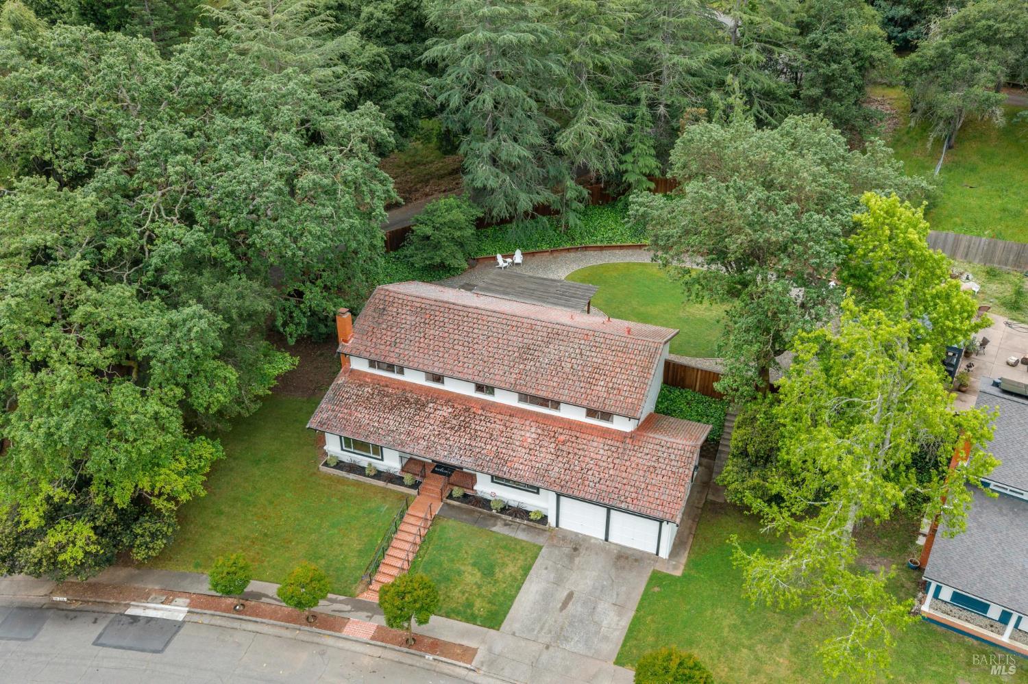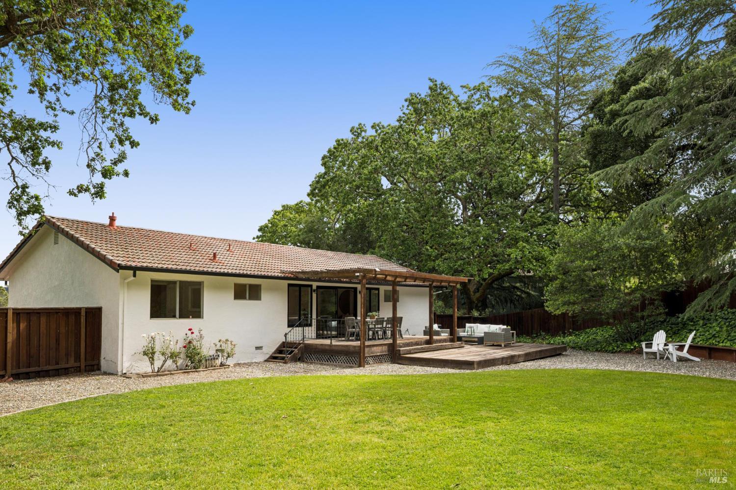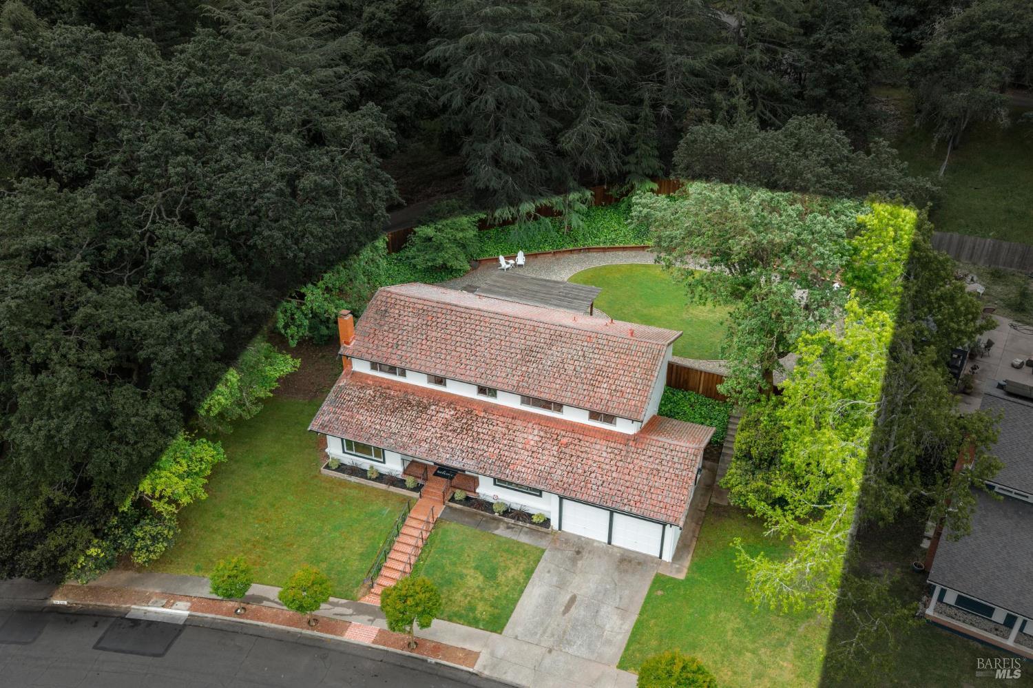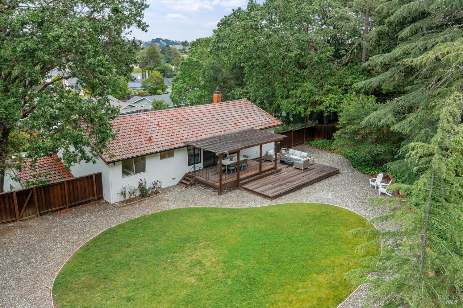 Set on a rare, park-like lot, this property offers the kind of space today's buyers are searching for, ie room to gather, play, and grow. Expansive lawns, mature trees, and a large deck create a private, "in the woods" feel that's perfect for adults & kids, pets, and weekend entertaining. A welcoming front porch and brick entry lead into a spacious living room anchored by a striking stone fireplace. The layout flows easily from the formal dining room to the kitchen, which includes a breakfast area ideal for casual meals, morning routines, or keeping an eye on homework. A nearby laundry room and powder room add everyday convenience. Newly installed wood floors and oak stairs bring a fresh, updated feel to the main level. Upstairs, a generous family room with a wet bar, game storage, and direct access to the deck and yard creates a true second living space- perfect for movie nights, play area, or hosting friends. A large redwood deck leads to the huge backyard, fully fenced with a spacious lawn area, room for gardens, and with exceptional potential: explore adding an ADU, pool, outdoor kitchen, or expanded living areas to suit your vision. The primary suite is oversized, with two closets including a walk-in, and an updated bath with dual vanity and marble counters. Four additional bedrooms provide flexibility for growing families, guests, or home offices. Surrounded by trees and privacy, yet just minutes from town, trails, golf, and well-regarded schools, this location offers the best of both worlds. Held by one family since 1968, this is a rare opportunity to create long-term value in a truly special setting.