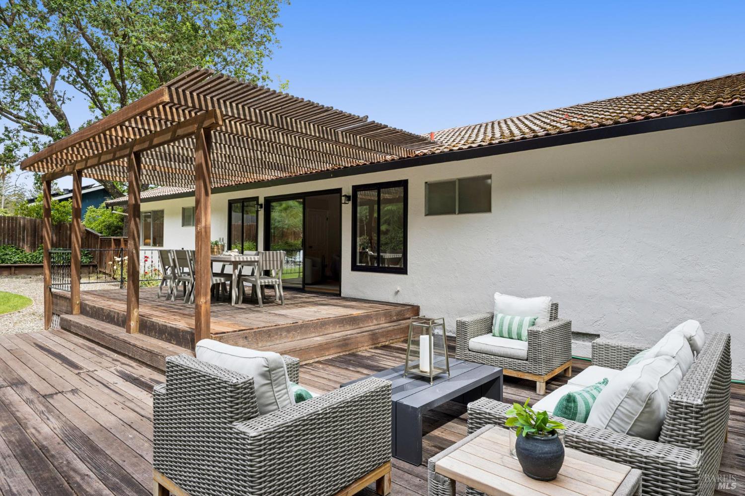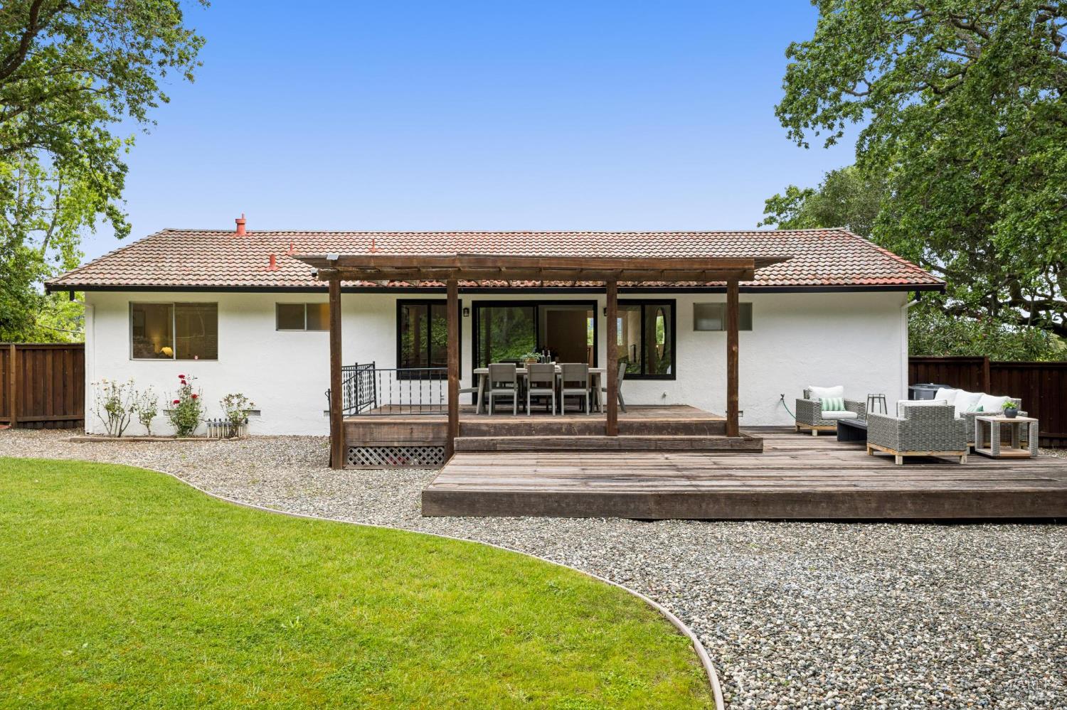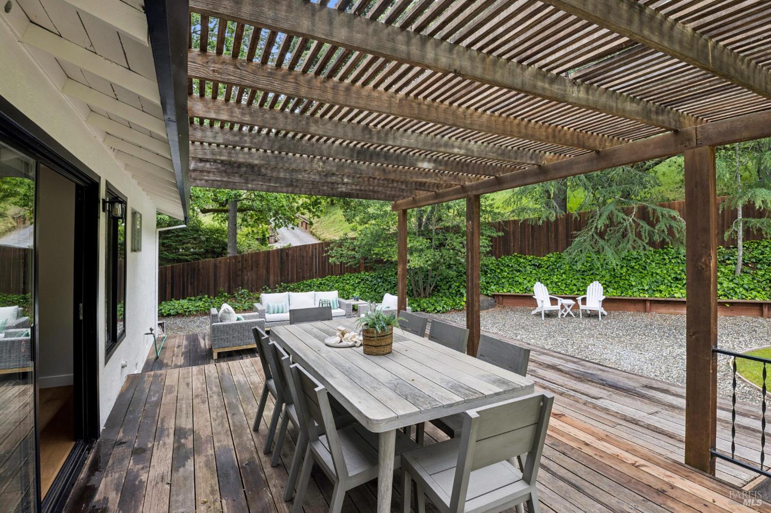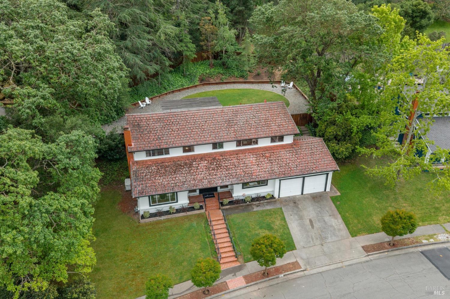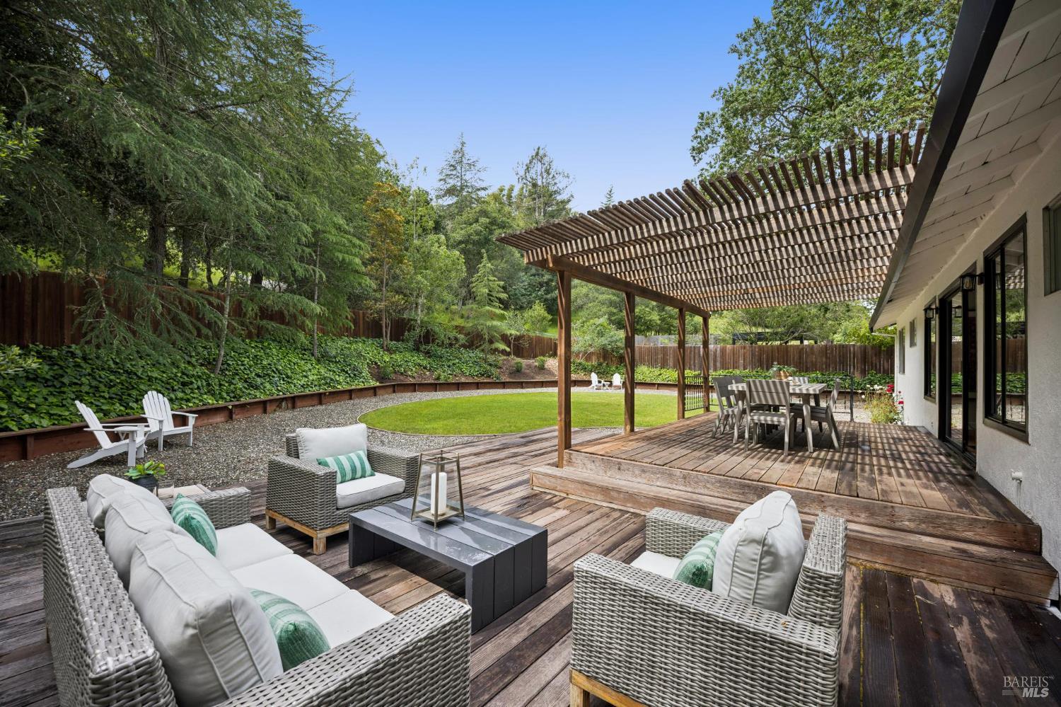 Set on a rare, park-like lot, this property offers the kind of space today's buyers are searching for, ie room to gather, play, and grow. Expansive lawns, mature trees, and a large deck create a private, "in the woods" feel that's perfect for adults & kids, pets, and weekend entertaining. A welcoming front porch and brick entry lead into a spacious living room anchored by a striking stone fireplace. The layout flows easily from the formal dining room to the kitchen, which includes a breakfast area ideal for casual meals, morning routines, or keeping an eye on homework. A nearby laundry room and powder room add everyday convenience. Newly installed wood floors and oak stairs bring a fresh, updated feel to the main level. Upstairs, a generous family room with a wet bar, game storage, and direct access to the deck and yard creates a true second living space- perfect for movie nights, play area, or hosting friends. A large redwood deck leads to the huge backyard, fully fenced with a spacious lawn area, room for gardens, and with exceptional potential: explore adding an ADU, pool, outdoor kitchen, or expanded living areas to suit your vision. The primary suite is oversized, with two closets including a walk-in, and an updated bath with dual vanity and marble counters. Four additional bedrooms provide flexibility for growing families, guests, or home offices. Surrounded by trees and privacy, yet just minutes from town, trails, golf, and well-regarded schools, this location offers the best of both worlds. Held by one family since 1968, this is a rare opportunity to create long-term value in a truly special setting.