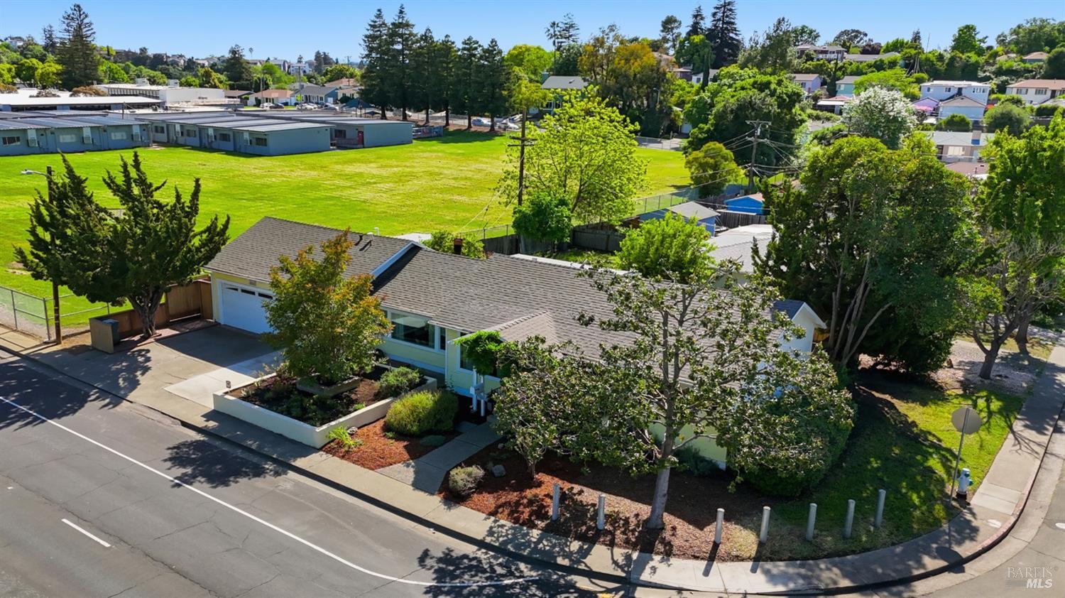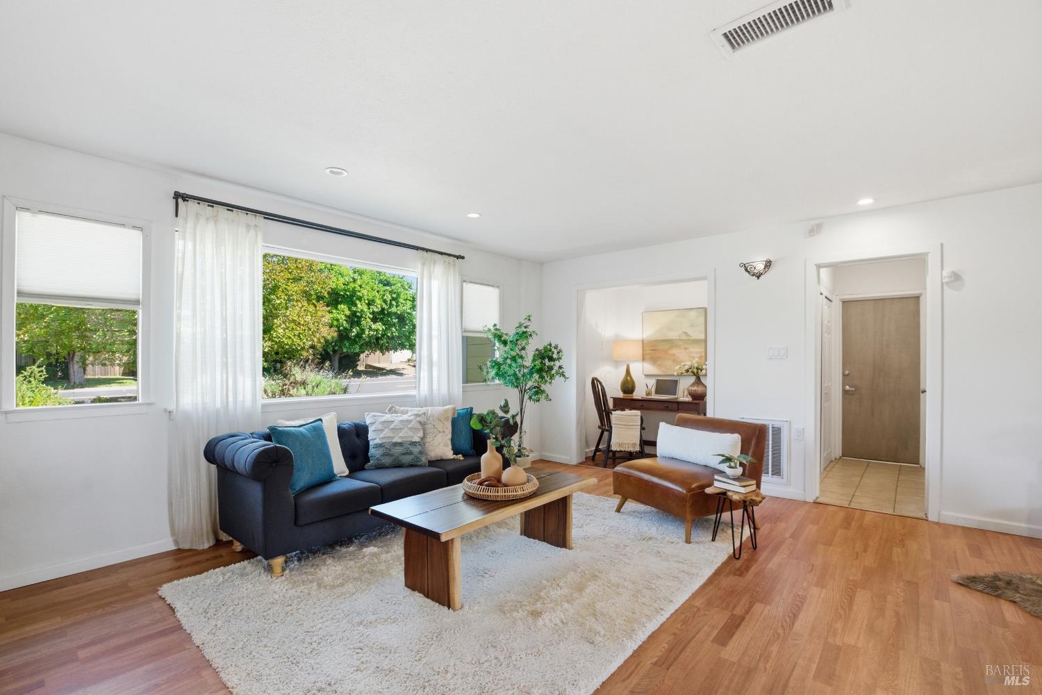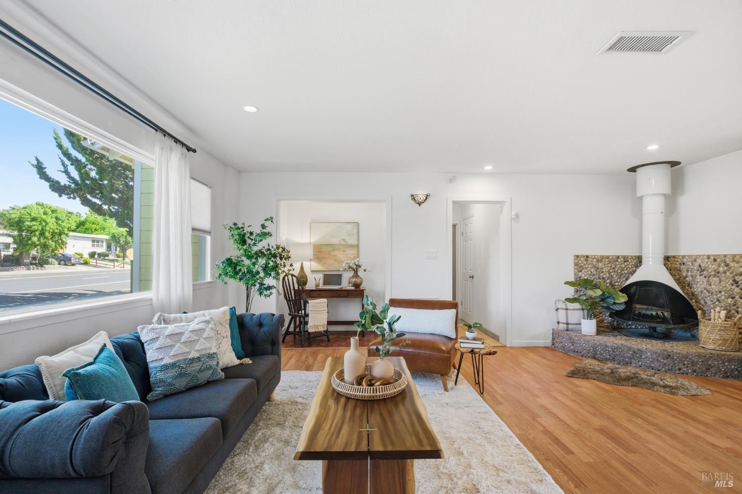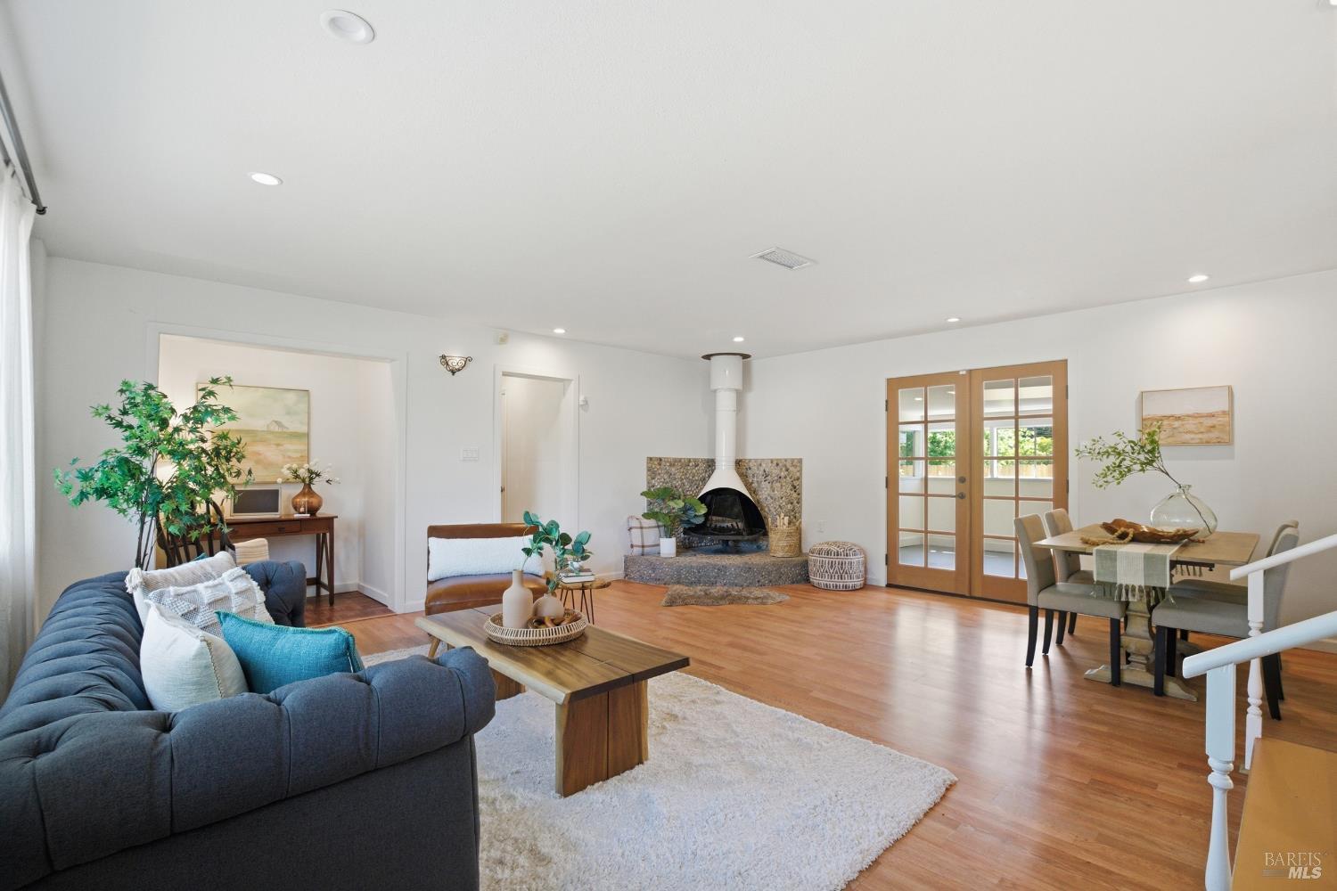 Prepare to be charmed! You'll love this beautiful circa 1953 rancher located in the established Rancho Fleming neighborhood of North Vallejo with mid-century charm that has been enhanced for today's lifestyle. Features include its original mid-century freestanding cone fireplace, as well as original hardwood flooring throughout, all combined with a tastefully updated kitchen that has been opened up to the adjoining spaces and also leads to the back garden with raised beds, making it ideal for entertaining. The bathrooms have been remodeled in keeping with its mid-century era and come complete with striking and fun penny tile finishes. For the artistic minds or craftspeople, there's an additional space that served as an art studio for the current owner, a soundproof music room, and even a large outdoor shed for additional storage. Curb appeal is A+ with its sprawling presence and perfect A-frame porch, both true to its era. Ideally located approximately 20 minutes to Berkeley or Walnut Creek, 20 minutes to Napa, or 20 minutes to Marin. Be at the Vallejo or Benicia waterfronts in 10 minutes, or sail to SF, just a short ferry ride away.