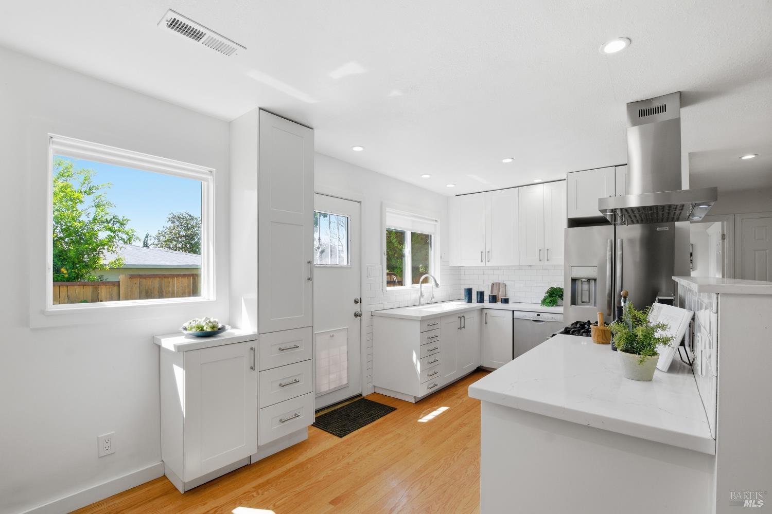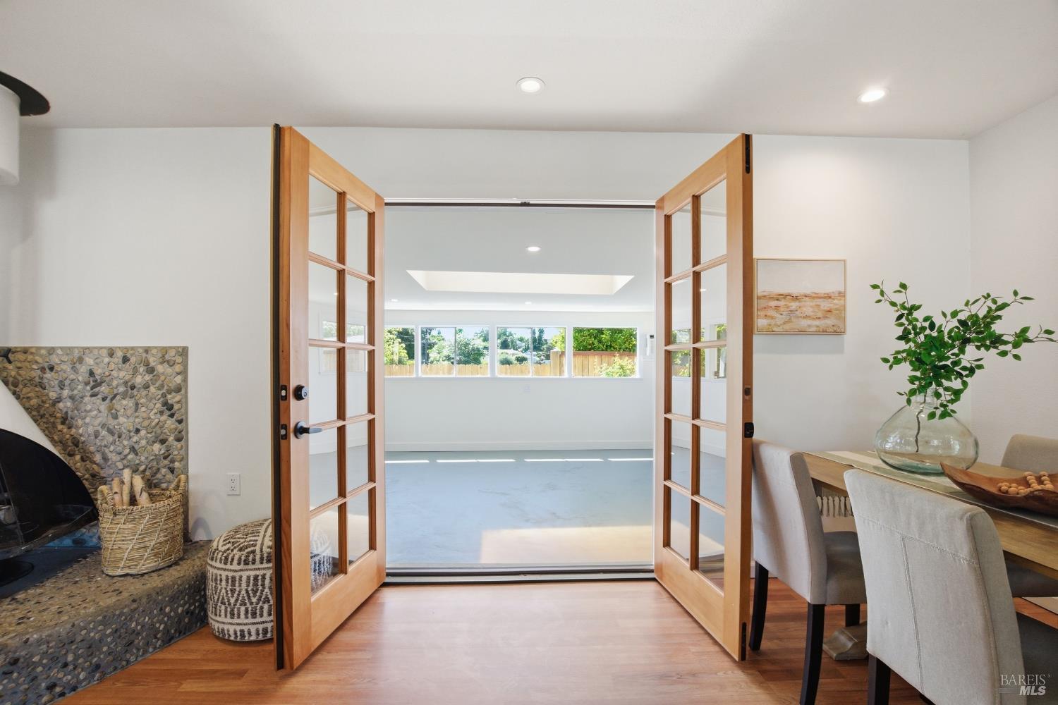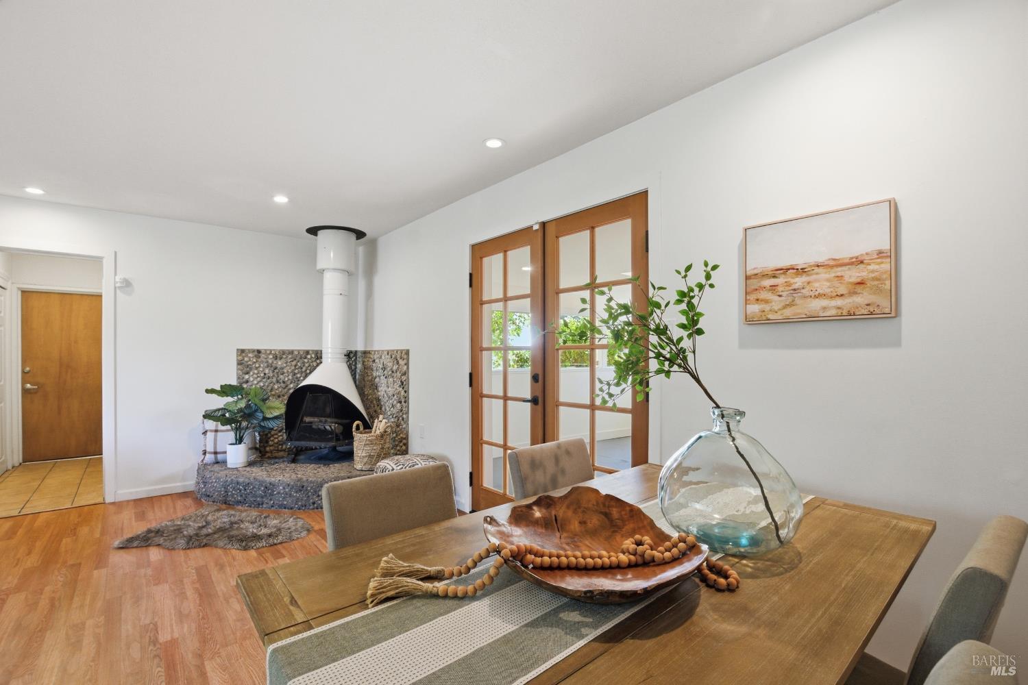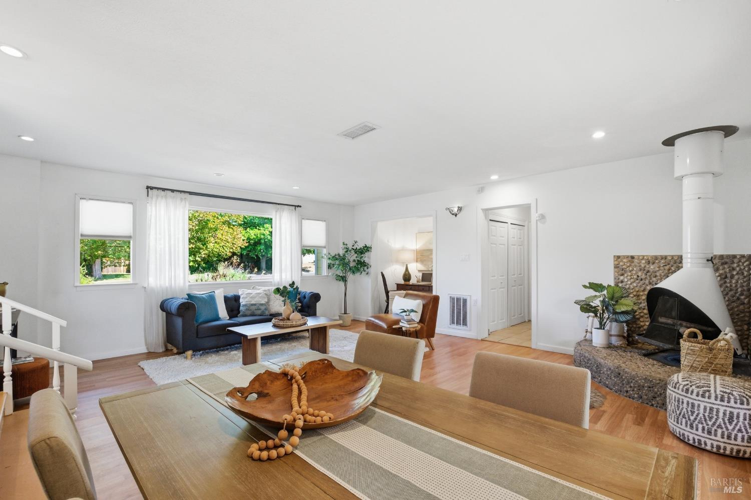 Prepare to be charmed! You'll love this beautiful circa 1953 rancher located in the established Rancho Fleming neighborhood of North Vallejo with mid-century charm that has been enhanced for today's lifestyle. Features include its original mid-century freestanding cone fireplace, as well as original hardwood flooring throughout, all combined with a tastefully updated kitchen that has been opened up to the adjoining spaces and also leads to the back garden with raised beds, making it ideal for entertaining. The bathrooms have been remodeled in keeping with its mid-century era and come complete with striking and fun penny tile finishes. For the artistic minds or craftspeople, there's an additional space that served as an art studio for the current owner, a soundproof music room, and even a large outdoor shed for additional storage. Curb appeal is A+ with its sprawling presence and perfect A-frame porch, both true to its era. Ideally located approximately 20 minutes to Berkeley or Walnut Creek, 20 minutes to Napa, or 20 minutes to Marin. Be at the Vallejo or Benicia waterfronts in 10 minutes, or sail to SF, just a short ferry ride away.