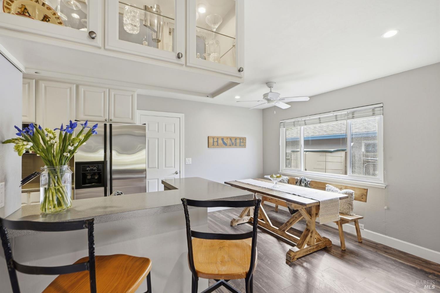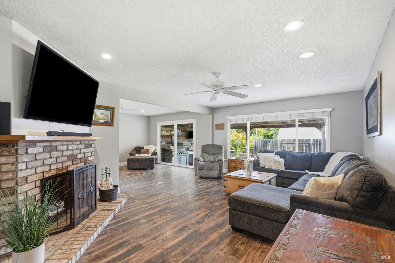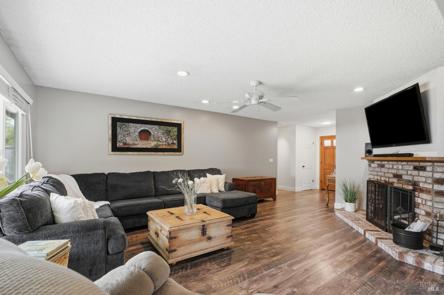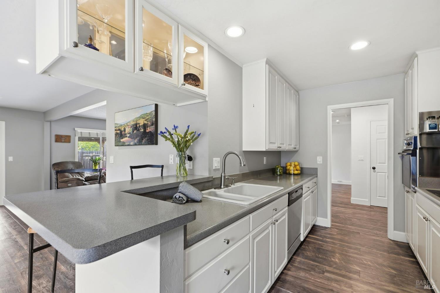 Welcome to this rarely available popular 4-bedroom 2-bath single level ranch home, located on a great street of an established neighborhood in East Novato. Updates to the home over the years include a new roof, dual paned windows, engineered flooring, electrical panel, electrical outlets & wall switches, recessed lighting, new interior doors with oiled bronze hardware, baseboards & trim, interior and exterior paint, window coverings, new water heater and updated kitchen & baths. The kitchen has a sizable workspace and a raised countertop with seating and opens to a casual dining area. The spacious family room can transition to a formal dining area and has a slider to the covered patio. The formal living room was opened up by removing a section of the wall to the family room/dining area to give an open feel and has an inviting brick fireplace. Out back you will find a level yard that has a covered outside bar area and is complete with a BBQ, rustic wood paneling on the ceiling and accent wall, a large seating area and a mounted television. A large lawn area in addition to a peaceful setting complete the area you will love. Large side yard with oversized gate allows for boat or trailer parking. 2-car garage. Close to Olive School, Trader Joe's, Starbucks, Whole Foods and Old Town Novato.