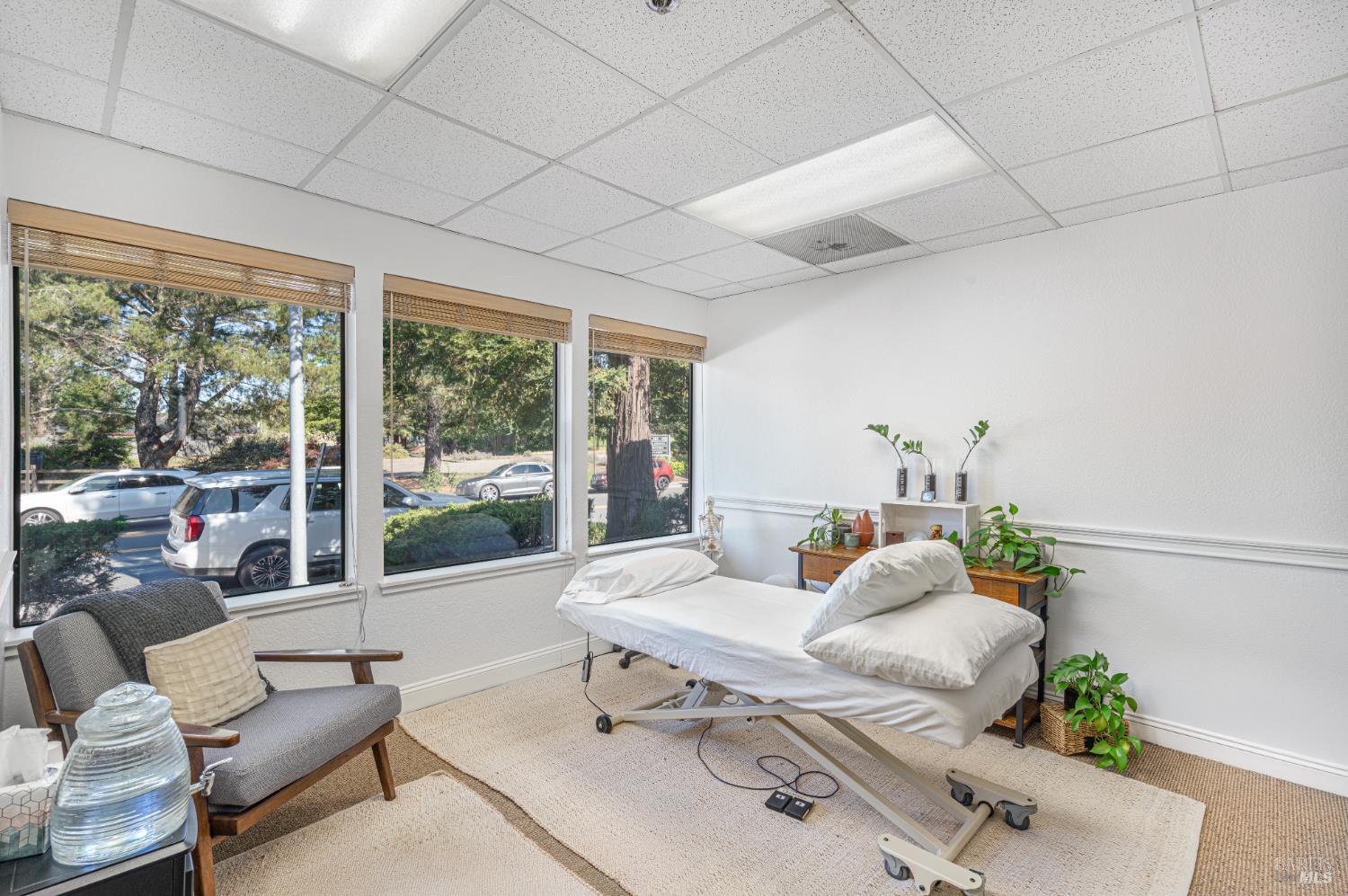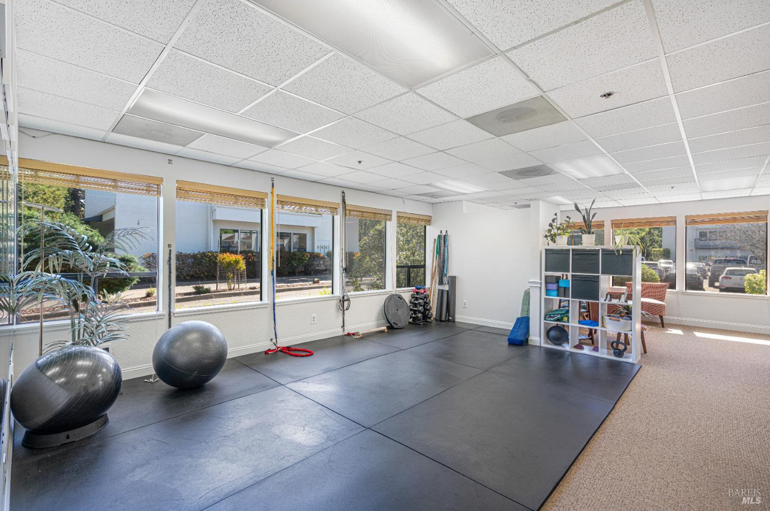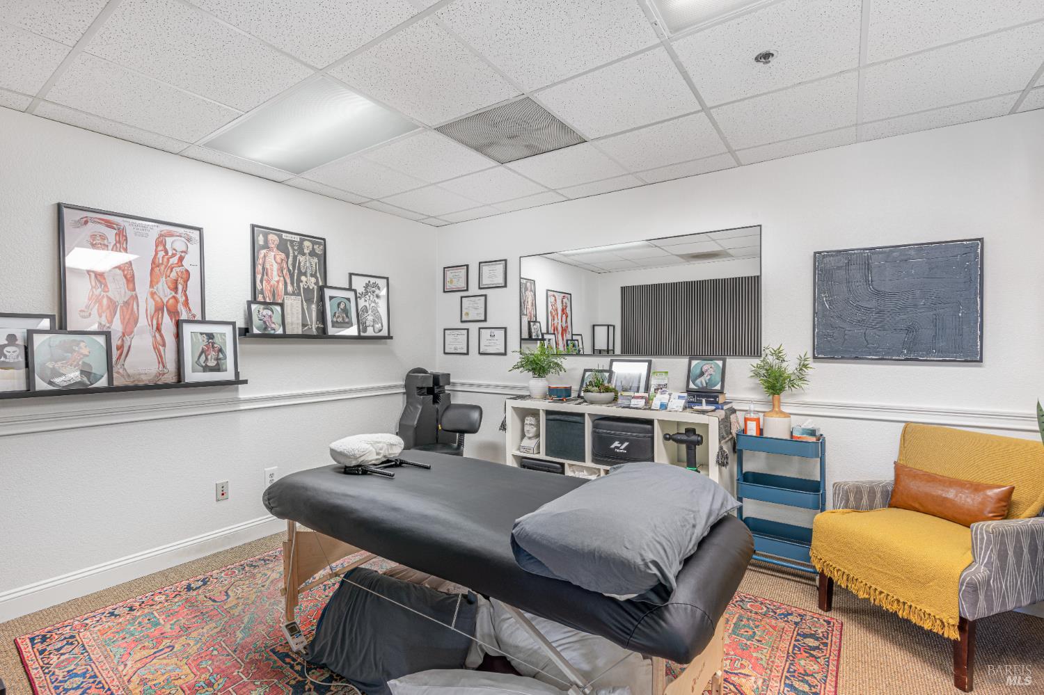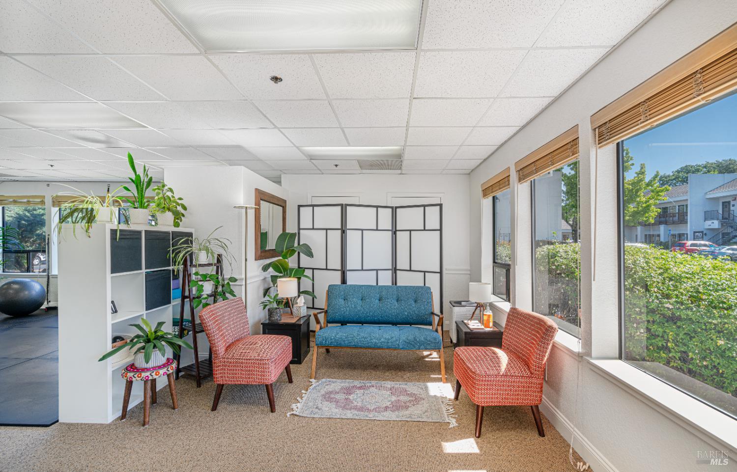 Well-designed and highly versatile commercial space offering a modern, turnkey buildout ideally suited for a wide variety of medical uses or professional office use. Located in the highly desirable Wikiup Professional / Larkfield corridor, the property benefits from a peaceful, professional setting with convenient access to Highway 101, Windsor, and the Sonoma County Airport area. The space features a welcoming reception area with a custom front desk, creating a polished first impression for clients and guests. Large windows line the perimeter, filling the interior with abundant natural light and enhancing the bright, open atmosphere throughout. The flexible floor plan includes a spacious open studio area, well-suited for fitness training and a variety of medical wellness-based uses. Additional features include three private rooms, two bathrooms, and a kitchenette, providing excellent functionality. Thoughtful finishes and an efficient layout make this a true turnkey opportunity for users seeking a professional, client-ready environment. The surrounding Wikiup business park is home to a mix of professional offices, medical and wellness practices, creating a strong, established commercial environment with consistent daytime activity and a well-balanced professional tenant base.