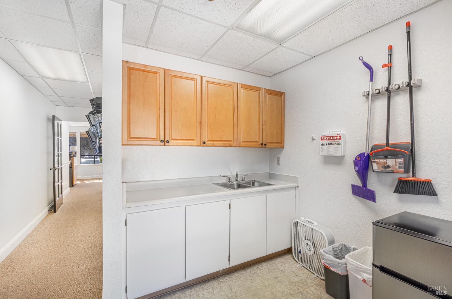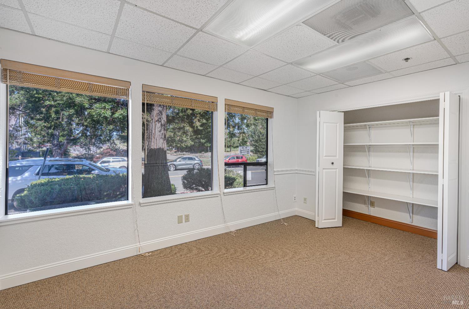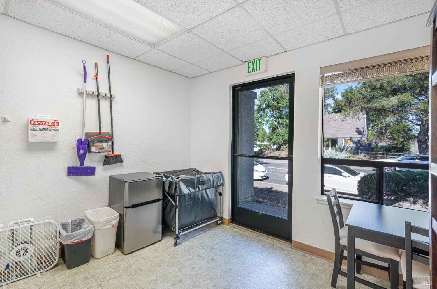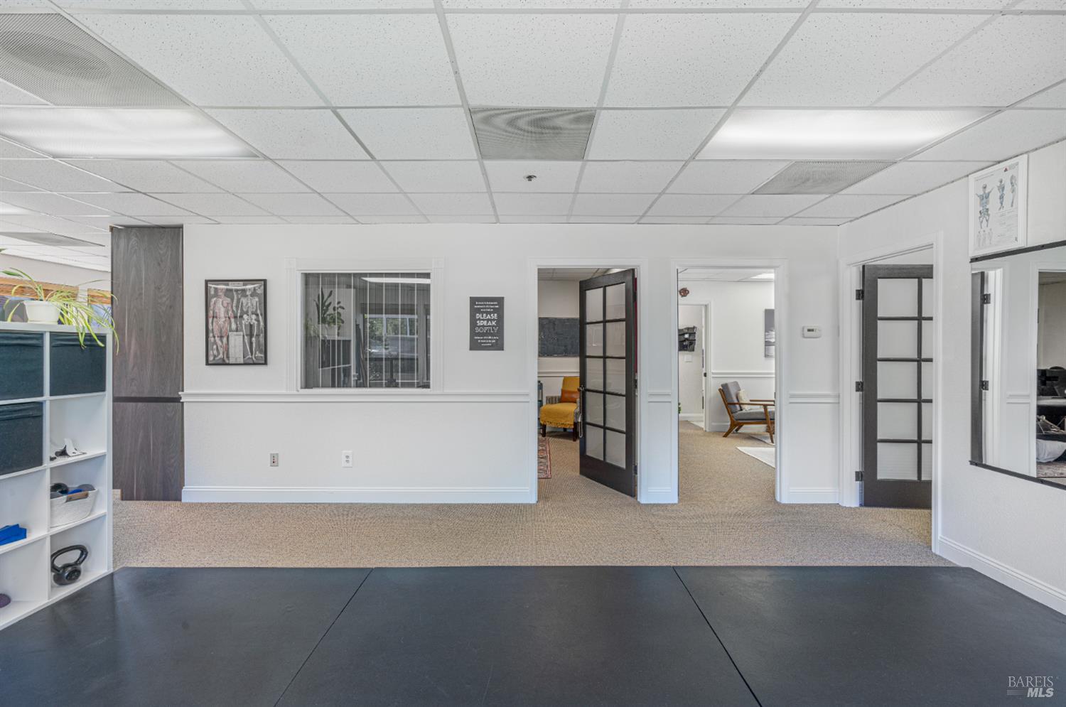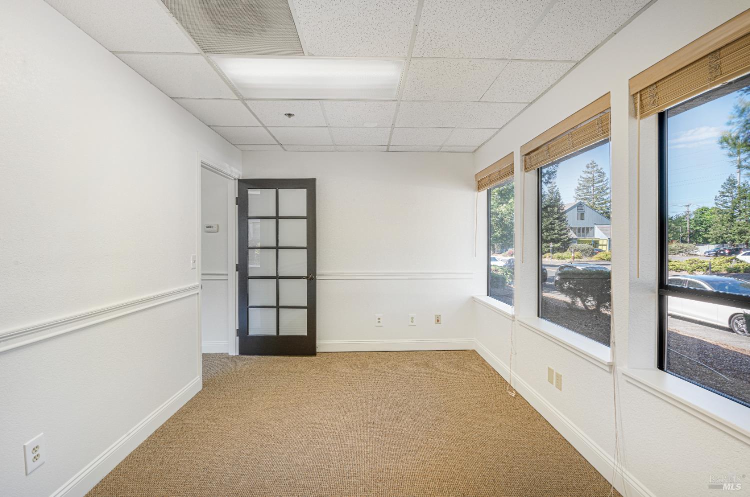 Well-designed and highly versatile commercial space offering a modern, turnkey buildout ideally suited for a wide variety of medical uses or professional office use. Located in the highly desirable Wikiup Professional / Larkfield corridor, the property benefits from a peaceful, professional setting with convenient access to Highway 101, Windsor, and the Sonoma County Airport area. The space features a welcoming reception area with a custom front desk, creating a polished first impression for clients and guests. Large windows line the perimeter, filling the interior with abundant natural light and enhancing the bright, open atmosphere throughout. The flexible floor plan includes a spacious open studio area, well-suited for fitness training and a variety of medical wellness-based uses. Additional features include three private rooms, two bathrooms, and a kitchenette, providing excellent functionality. Thoughtful finishes and an efficient layout make this a true turnkey opportunity for users seeking a professional, client-ready environment. The surrounding Wikiup business park is home to a mix of professional offices, medical and wellness practices, creating a strong, established commercial environment with consistent daytime activity and a well-balanced professional tenant base.