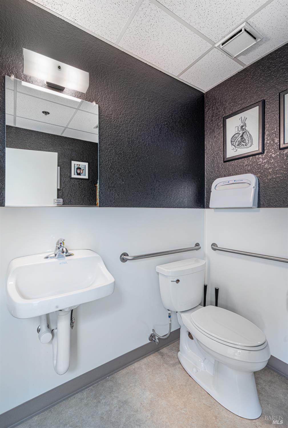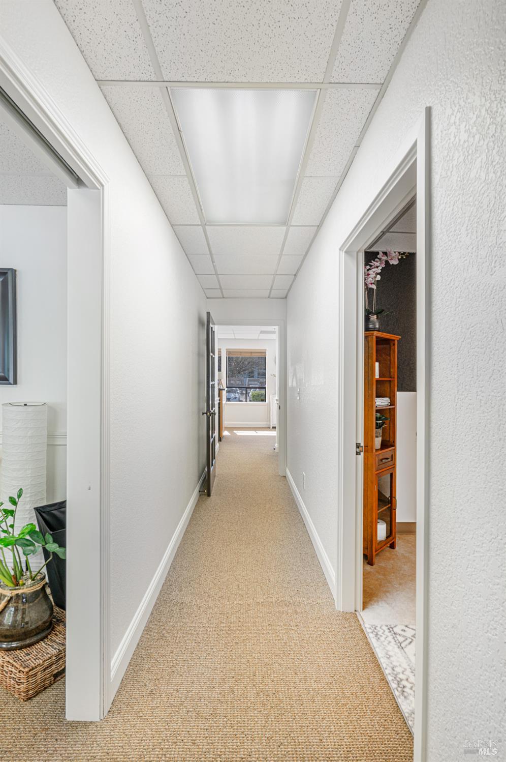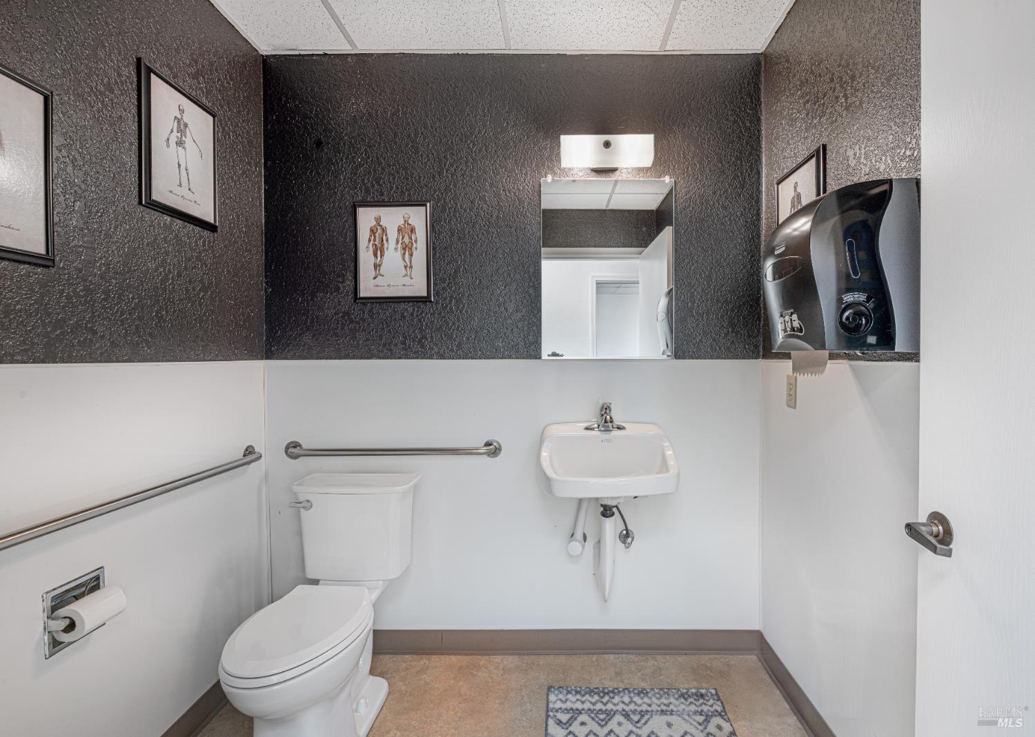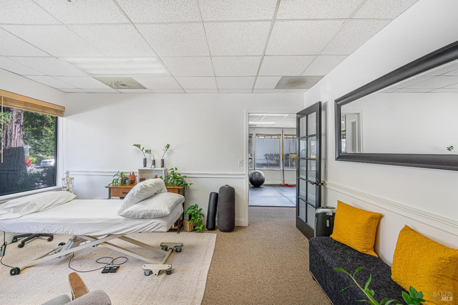 Well-designed and highly versatile commercial space offering a modern, turnkey buildout ideally suited for a wide variety of medical uses or professional office use. Located in the highly desirable Wikiup Professional / Larkfield corridor, the property benefits from a peaceful, professional setting with convenient access to Highway 101, Windsor, and the Sonoma County Airport area. The space features a welcoming reception area with a custom front desk, creating a polished first impression for clients and guests. Large windows line the perimeter, filling the interior with abundant natural light and enhancing the bright, open atmosphere throughout. The flexible floor plan includes a spacious open studio area, well-suited for fitness training and a variety of medical wellness-based uses. Additional features include three private rooms, two bathrooms, and a kitchenette, providing excellent functionality. Thoughtful finishes and an efficient layout make this a true turnkey opportunity for users seeking a professional, client-ready environment. The surrounding Wikiup business park is home to a mix of professional offices, medical and wellness practices, creating a strong, established commercial environment with consistent daytime activity and a well-balanced professional tenant base.