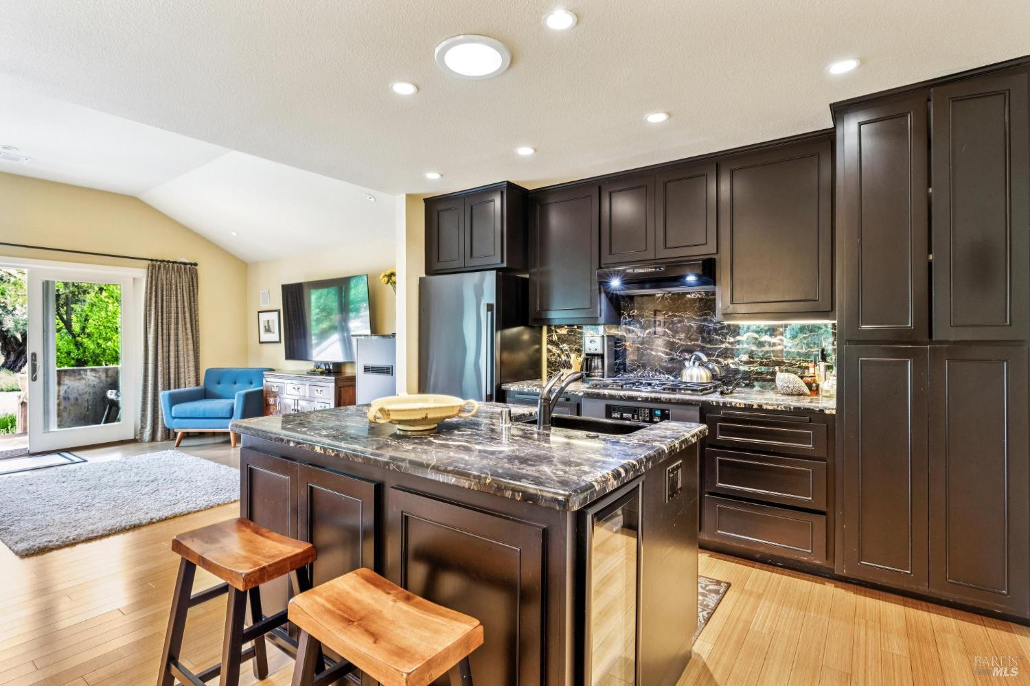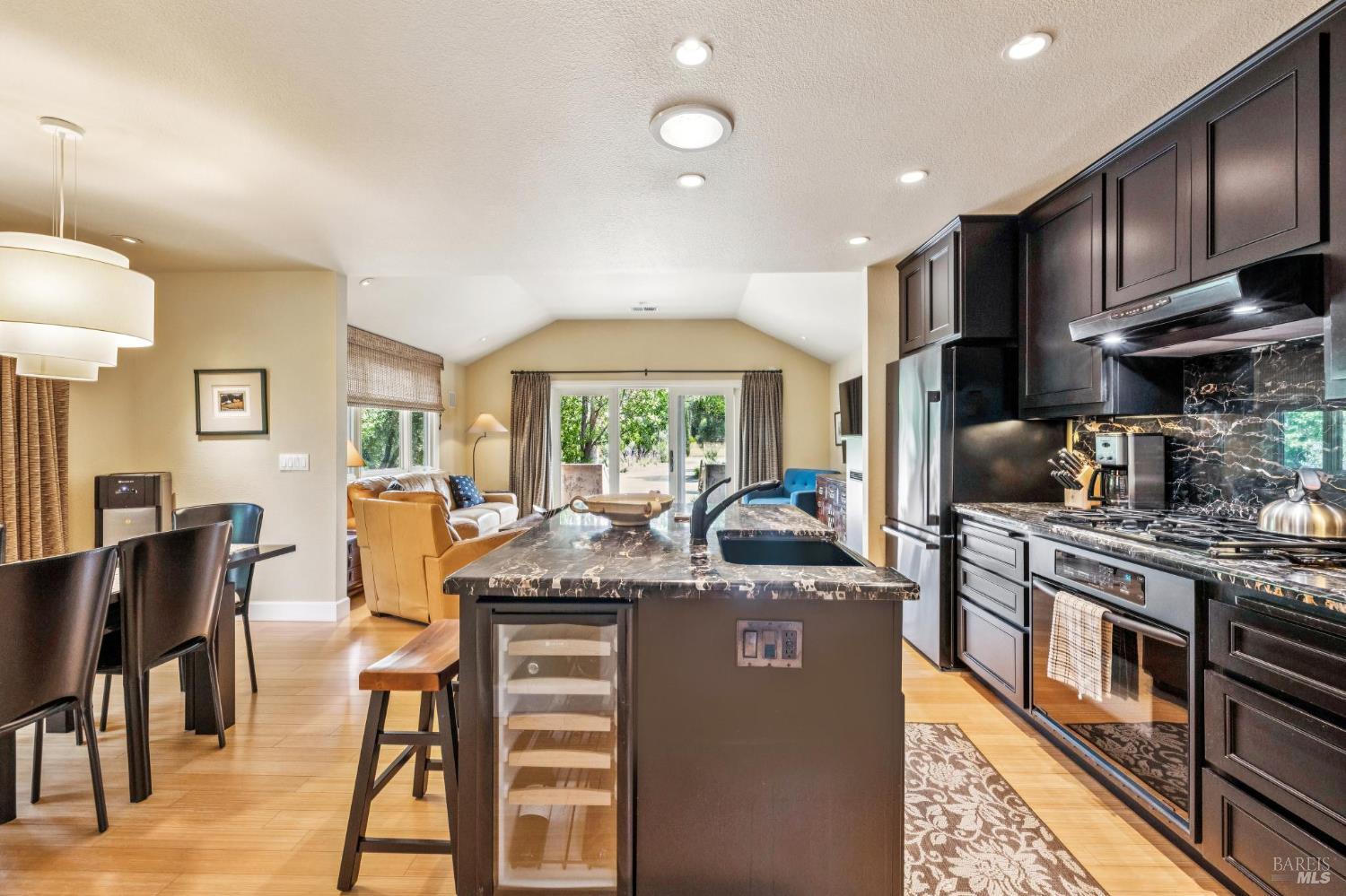 Your own Shangri-La in the Napa Valley. This Calistoga Bungalow was tastefully remodeled by the present owners in 2003. Spacious great room with bamboo flooring, raised ceiling and access to a private patio for alfresco dining. Extensive low maintenance landscaping was professionally designed and features a 100+/- year old Olive tree, numerous palm trees and various other plantings.